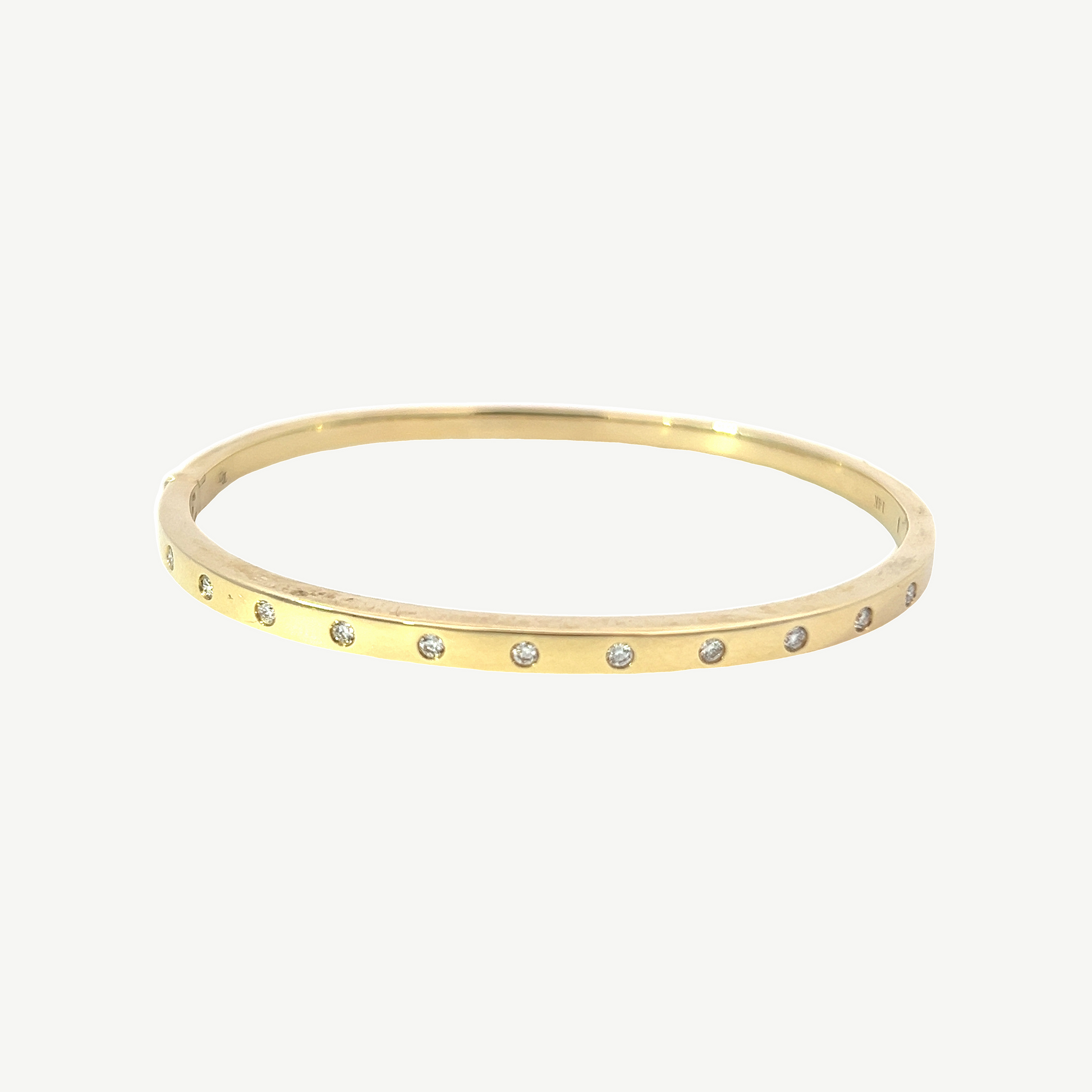 Elevate your style with our Scattered Diamond Bracelet! Featuring scattered diamonds half-way around, this bracelet adds a touch of glamour to any outfit. Make a statement and shine bright with this must-have accessory.