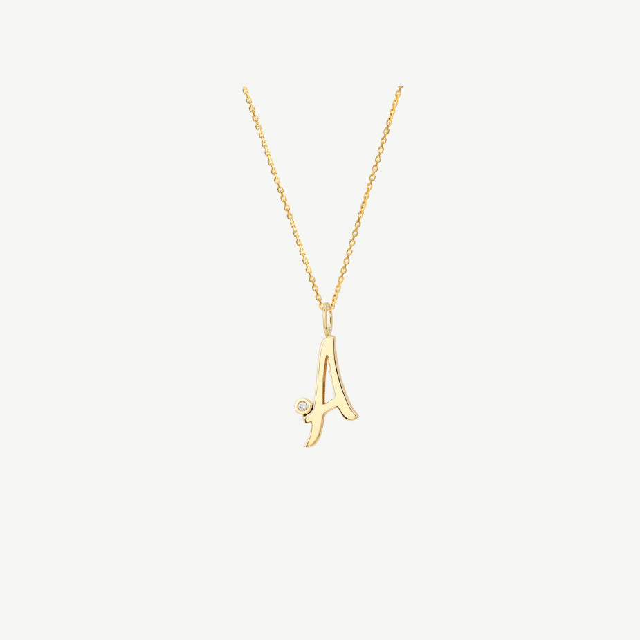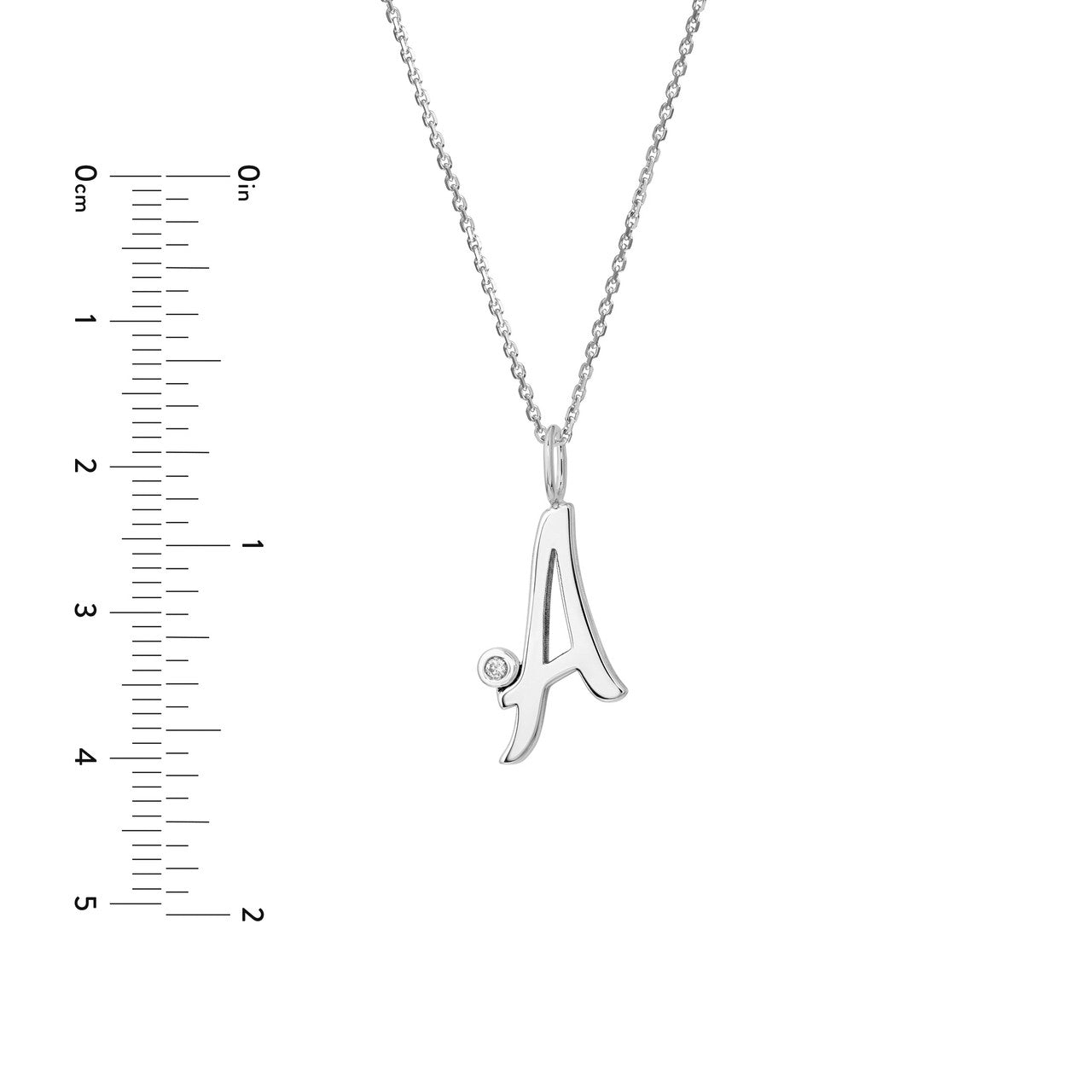 Made specially for you, this script initial necklace features a 1.7mm diamond bezel. The 15mm pendant hangs from a chain that adjusts from 16 to 18 inches for the perfect fit.
