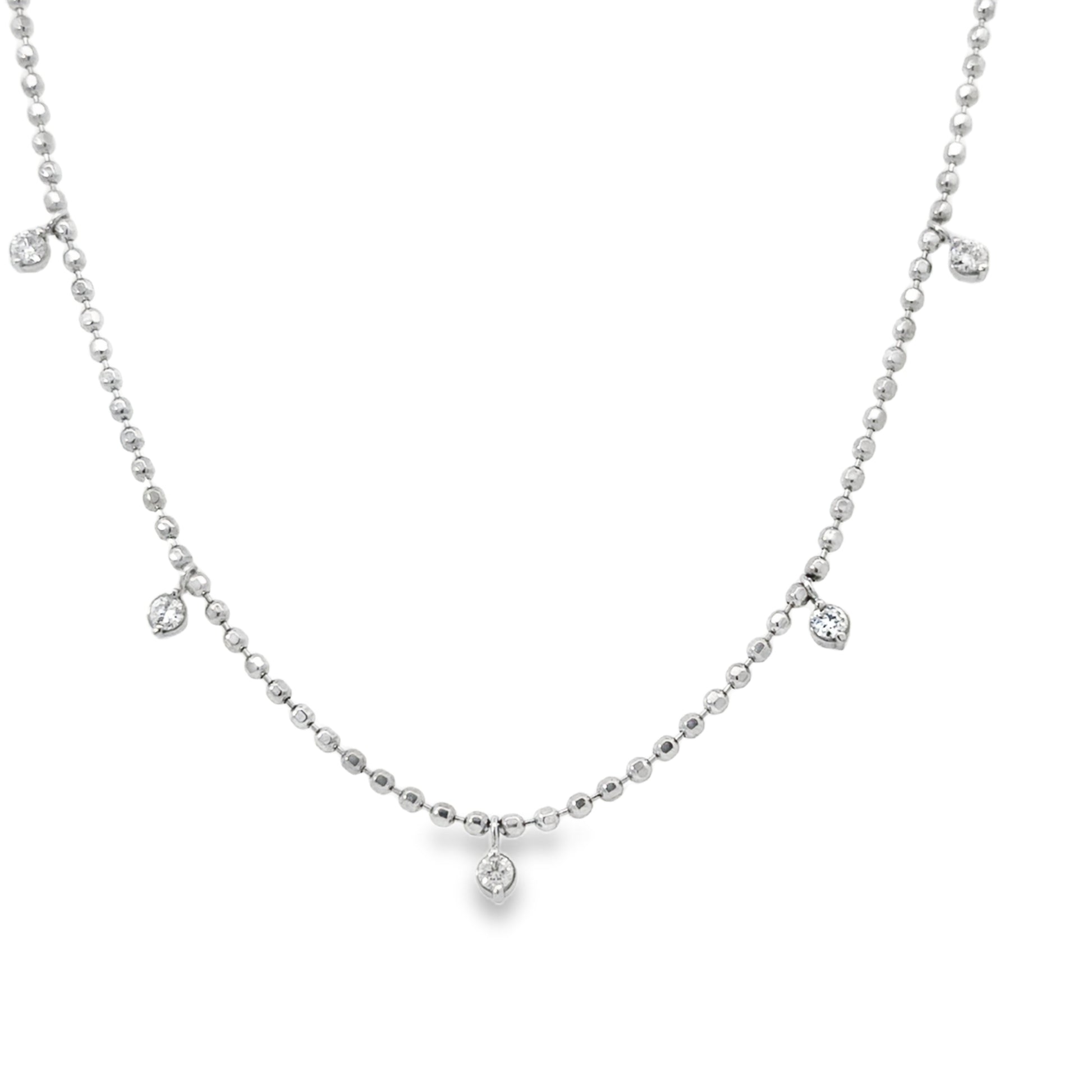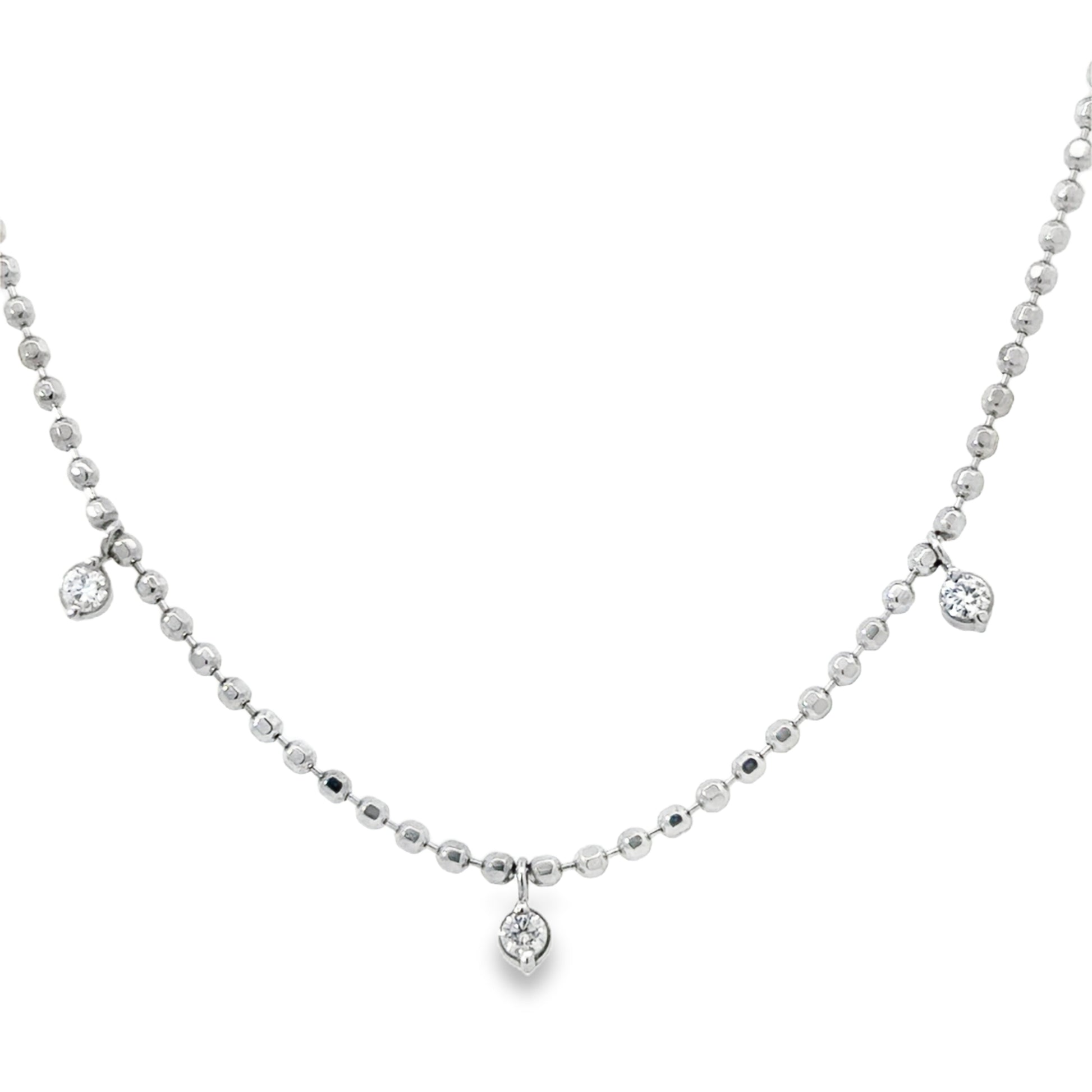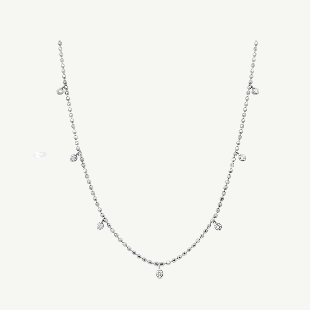 Add some sparkle to your wardrobe with our dainty Silver Dangle Crystal Station Necklace. Made with 14Kw and adorned with 18 inches of dazzling crystal beads, this necklace is perfect for any occasion. Bring a touch of elegance and fun to your look with this playful accessory.