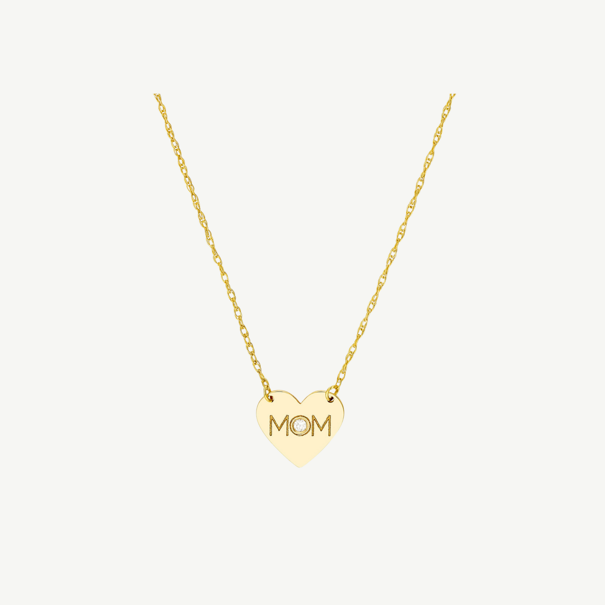 It's got her name written all over it! This 1.2pt diamond heart necklace with 'MOM' written over it is made in 14K gold and adjusts 16-18 inches.