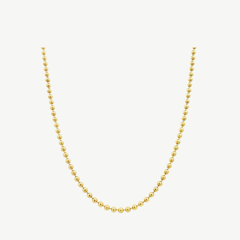 This stunning necklace features a string of finely crafted 2.5mm gold beads, offering a touch of sophistication and timeless elegance to any ensemble. Its classic design ensures it pairs beautifully with both formal and casual attire.