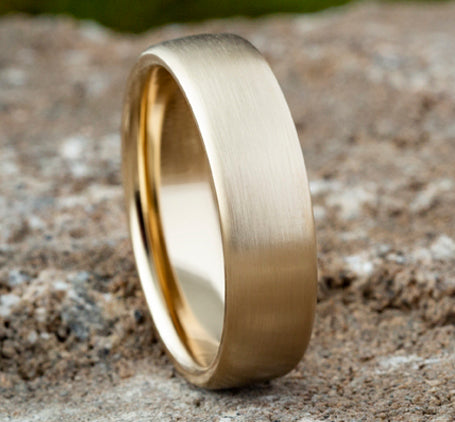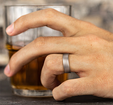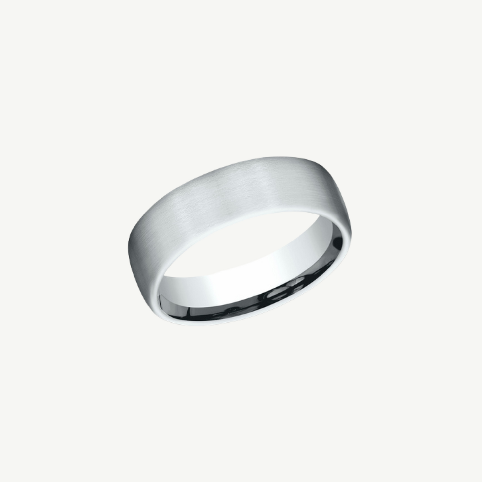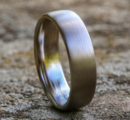 The Baron ring is a stunning example of contemporary design, crafted from durable tantalum. Its sleek, polished finish contrasts beautifully with the subtle brushed center, creating a sophisticated look. This ring combines strength and elegance, making it a perfect choice for those seeking a unique symbol of their commitment.
