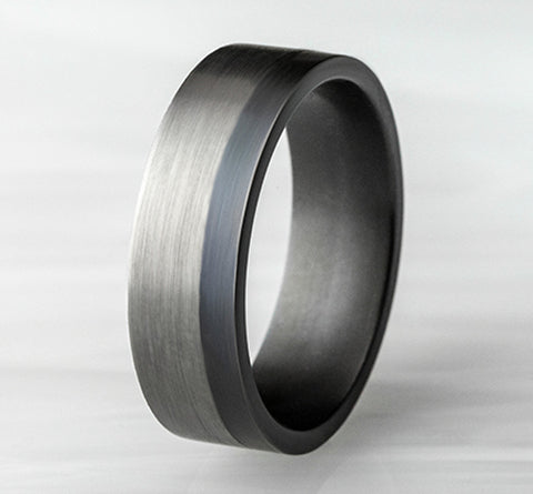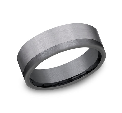 The Joker wedding ring by Benchmark is a bold and unique choice, crafted from durable tantalum for a distinctive gray finish. Its eye-catching design features a mix of polished and brushed textures, creating a modern aesthetic that stands out. Perfect for those looking to express their individuality, this ring symbolizes a fun and adventurous approach to commitment.