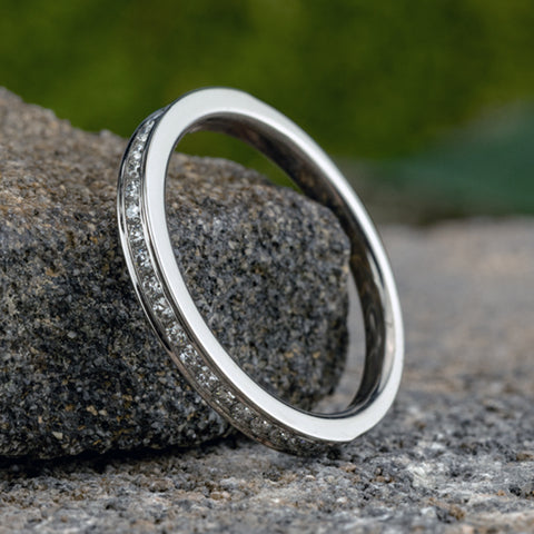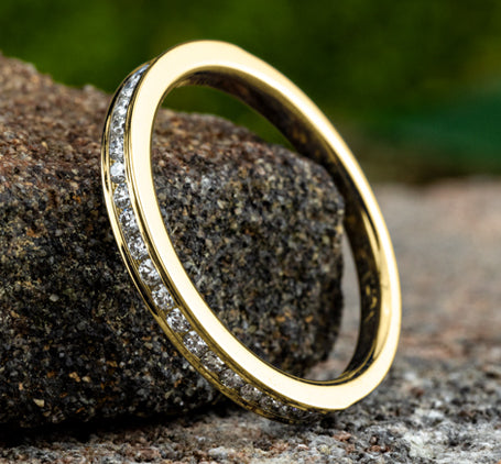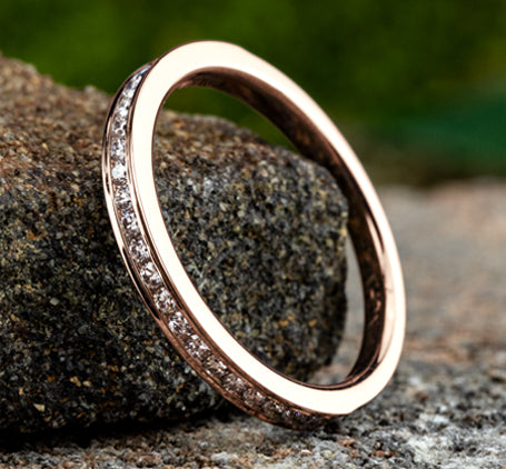 The Catherine ring elegantly combines timeless design with modern sophistication, featuring a stunning channel of brilliant diamonds set in a durable 14K gold band. Its delicate 2mm width offers a perfect balance of elegance and comfort, making it ideal for daily wear. Each diamond is carefully selected for quality, ensuring a sparkle that lasts a lifetime. Celebrate your love with this exquisite symbol of commitment.