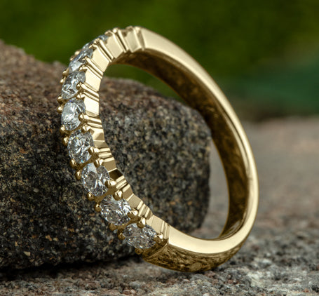 The Rory ring from Benchmark is a stunning anniversary band that combines contemporary design with enduring elegance. Its intricate detailing and shimmering diamonds create a captivating visual impact, making it a perfect symbol of love and celebration. Crafted with care, this ring is not only a beautiful accessory but also a meaningful keepsake for special moments.