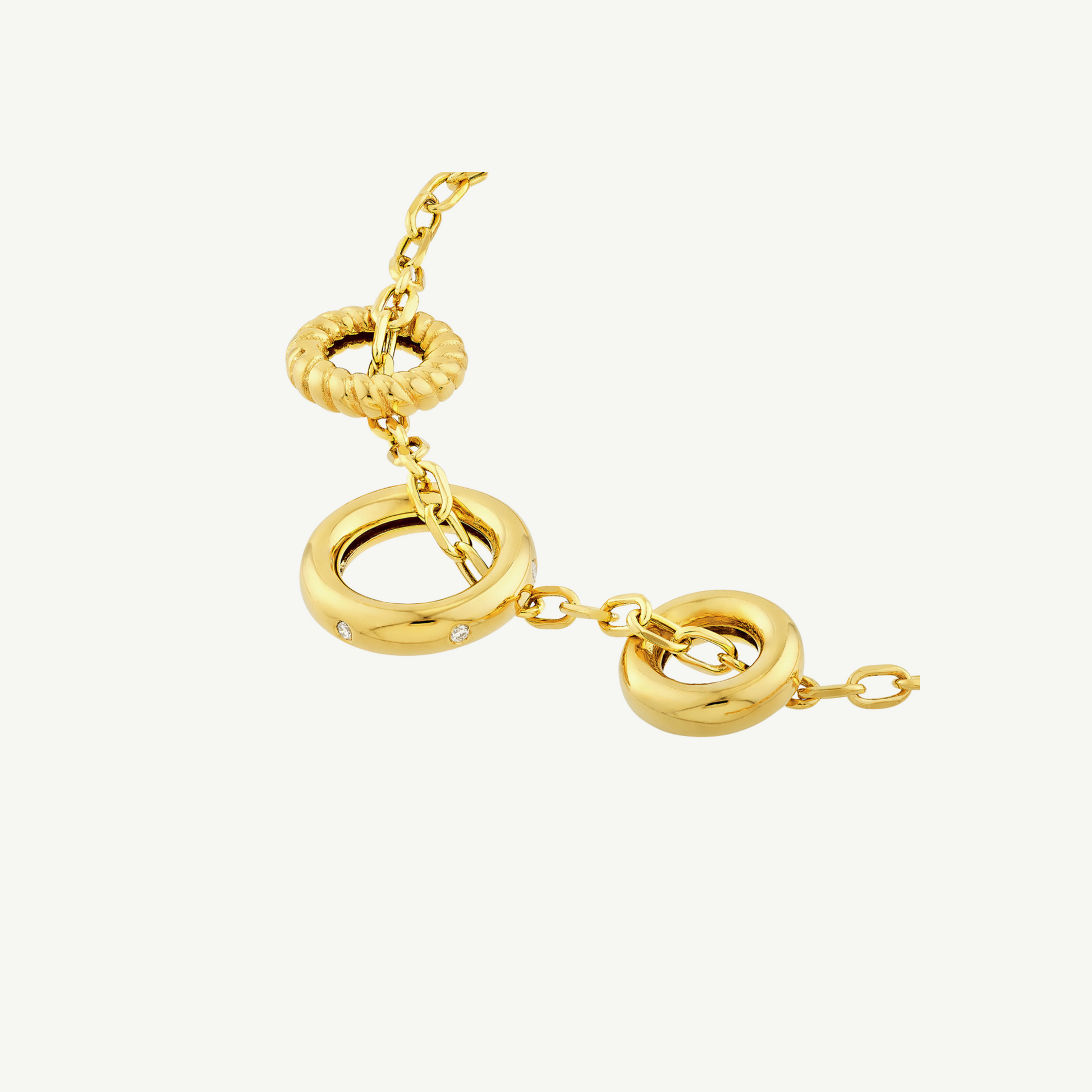 A dazzling addition to your neck. In 14K gold, this hollow Forzentina Necklace secures featuring 3 circle charms. With 3.3pts diamonds, this necklace shimmers from every angle.