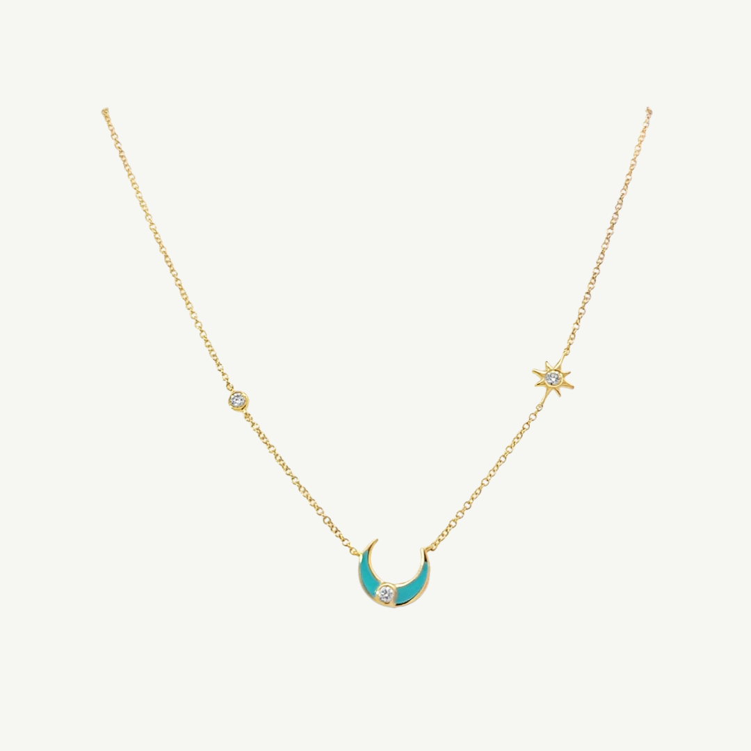 Turquoise Moon Bezel Star Necklace