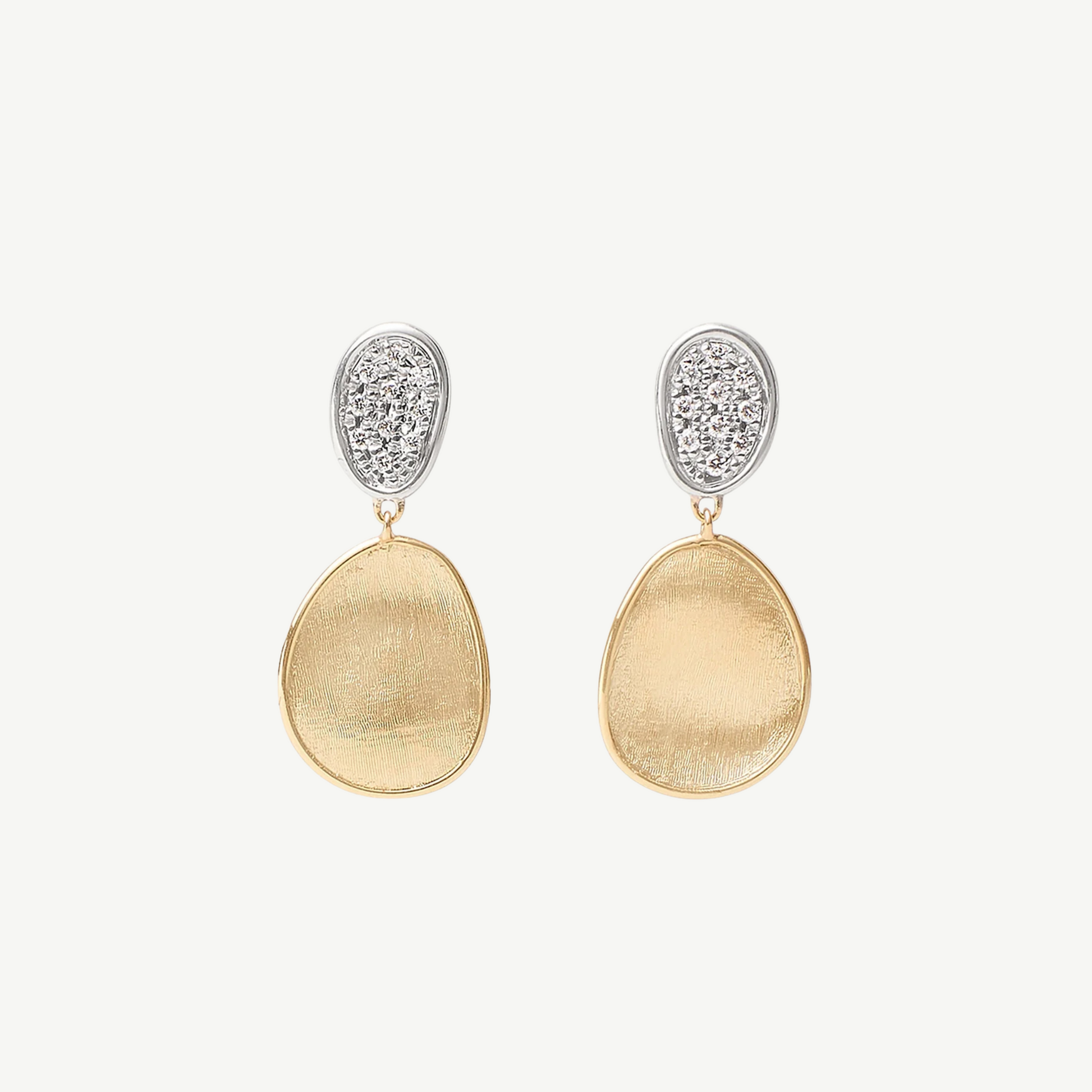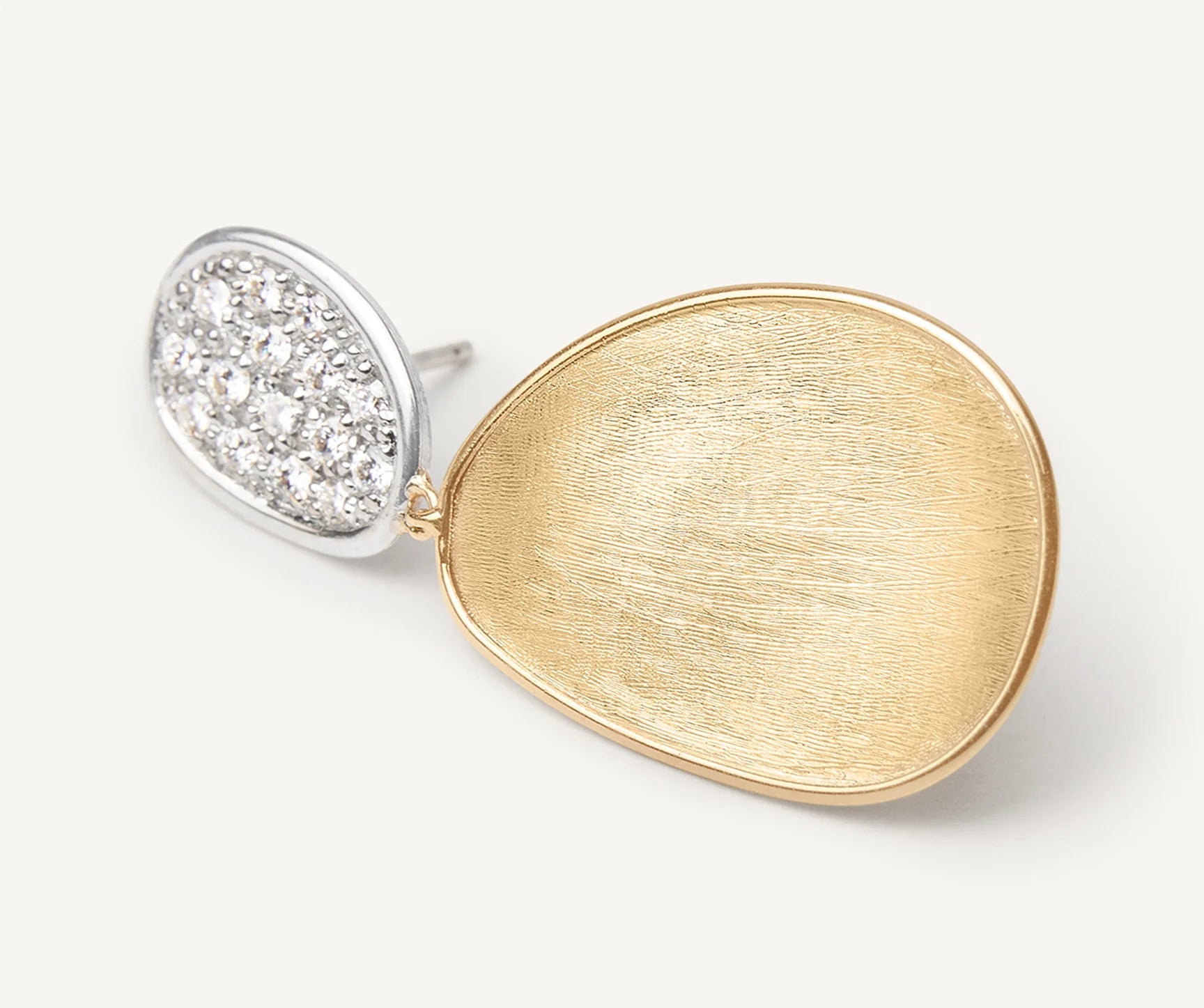 These Yellow Gold Double Drop Earrings are the perfect blend of elegance and versatility. Hand-engraved with an ancient Florentine technique, the 18K gold leaves add a romantic touch to any look. And with dazzling diamond pavé, these earrings will illuminate your face and make you feel like a shining star.